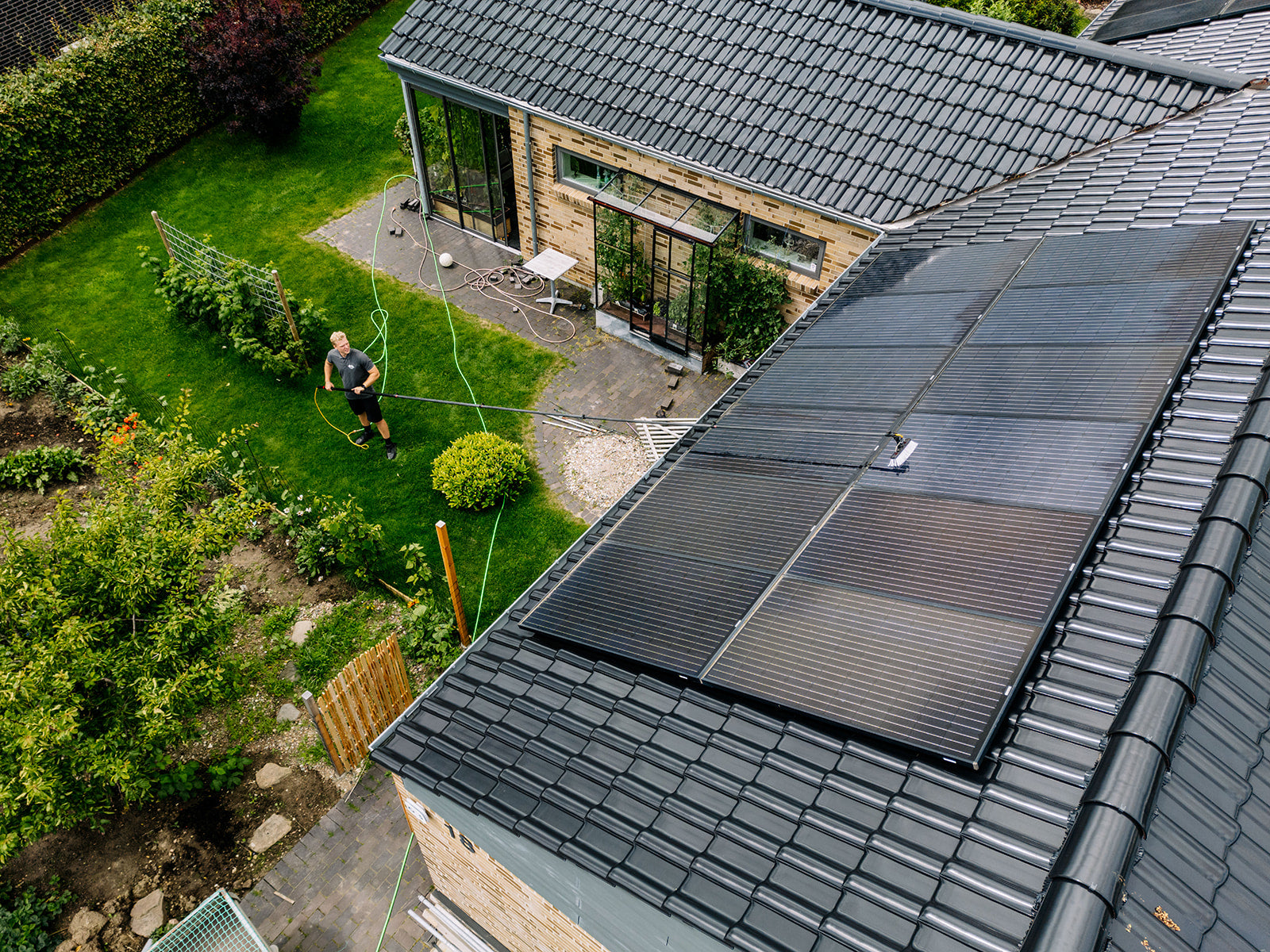 Vi er eksperter i at rengøre og vedligeholde solcelleanlæg, og vores mål er at sikre, at dine solceller fungerer optimalt og effektivt i mange år fremover. Støv og skidt kan blokere op mod 60% af det naturlige sollys der bliver optaget af solcellerne. Med en solcellevask gør du så solcelleanlæggene kan optage mest muligt sol og du kan derfor spare penge i længden, ved at holde dine solceller rene. Ved regelmæssig solcellevask kan du reducere mængden af snavs og støv, der bygger sig op på solcellerne og nedsætter deres ydeevne. Det kan også hjælpe med at reducere risikoen for skade på solcellerne og forlænge deres levetid.